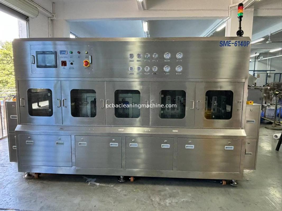 SME-6140 is an online, integrated, fully automatic PCBA cleaning machine. It is used for online cleaning of organic and inorganic contaminants such as residual rosin flux and non-cleanable flux on the surface of PCBA after SMT soldering and THT insertion processes. It is widely applied in industries such as automotive electronics, military, aviation, aerospace, communication, medical, Mini LED, and intelligent instruments, and is suitable for centralized cleaning of large quantities of PCBA, balancing both cleaning efficiency and cleaning effect.